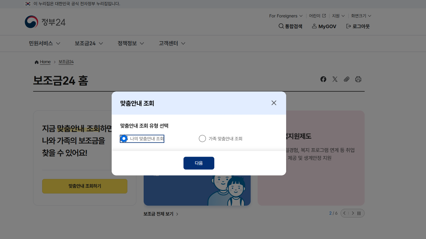 2. 나에게 맞는 정부지원금 한눈에 확인하기