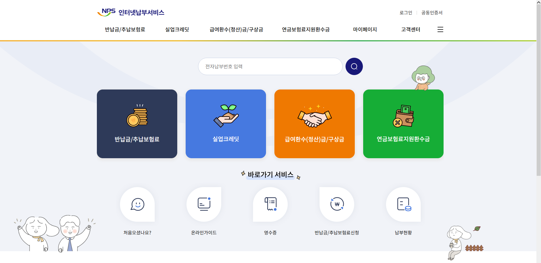 로그인 : 홈페이지와 마찬가지로 공동인증서, 금융인증서, 간편 인증 등을 통해 로그인합니다.
