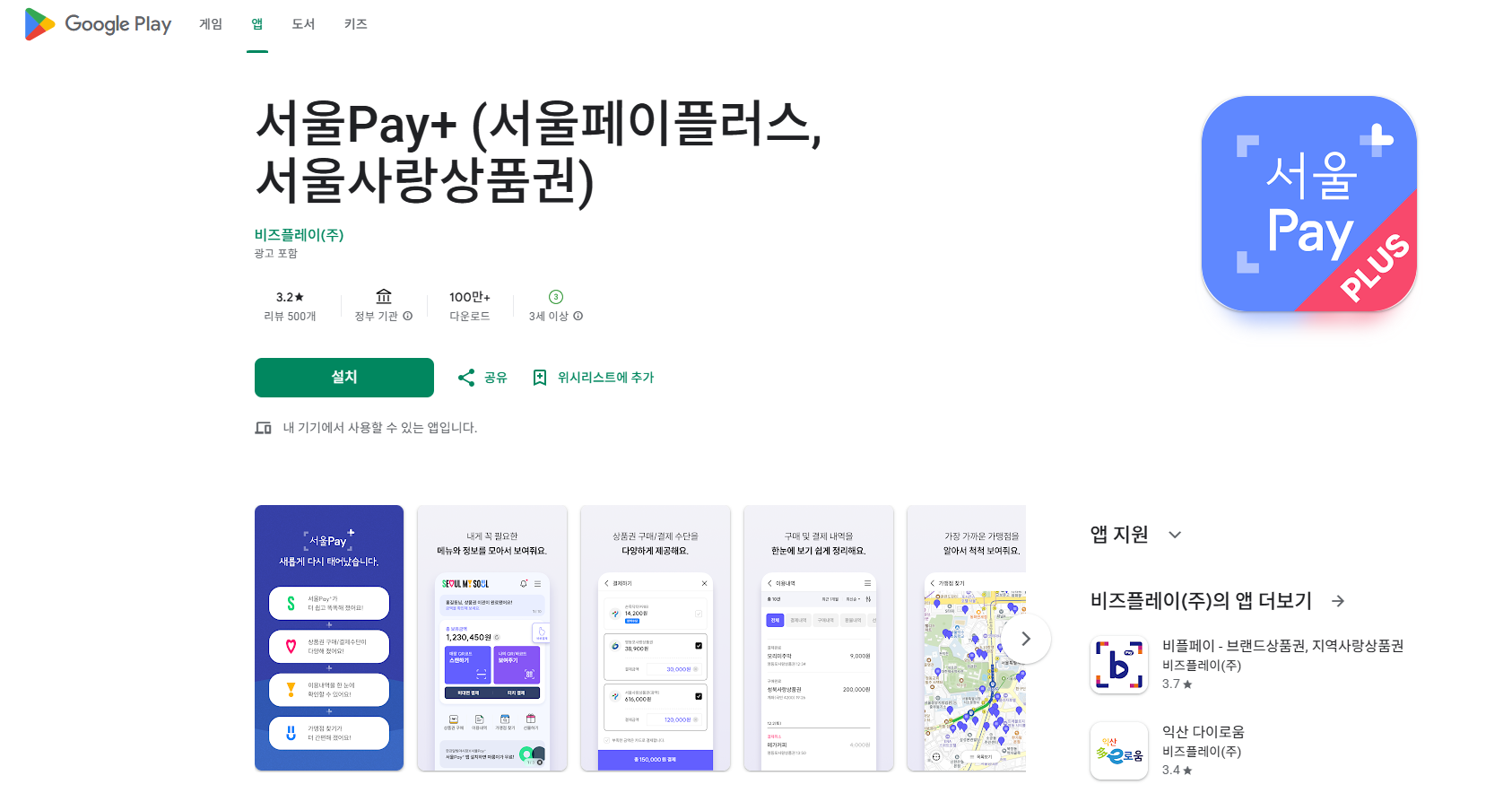 1단계: 서울pay+ 앱 설치 및 실행
