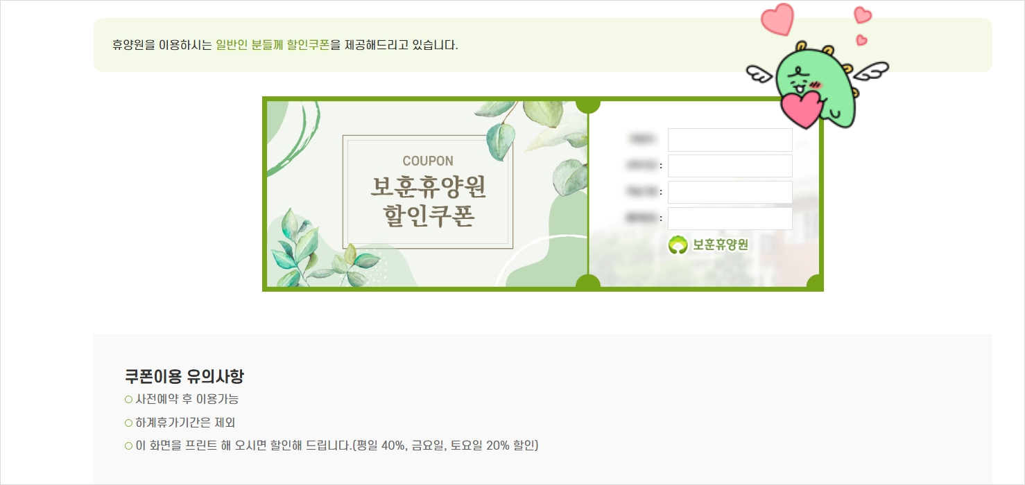 충주 보훈휴양원 역시 이 시기에 맞춰 한정 할인쿠폰 또는 부대시설 이용권을 제공합니다.