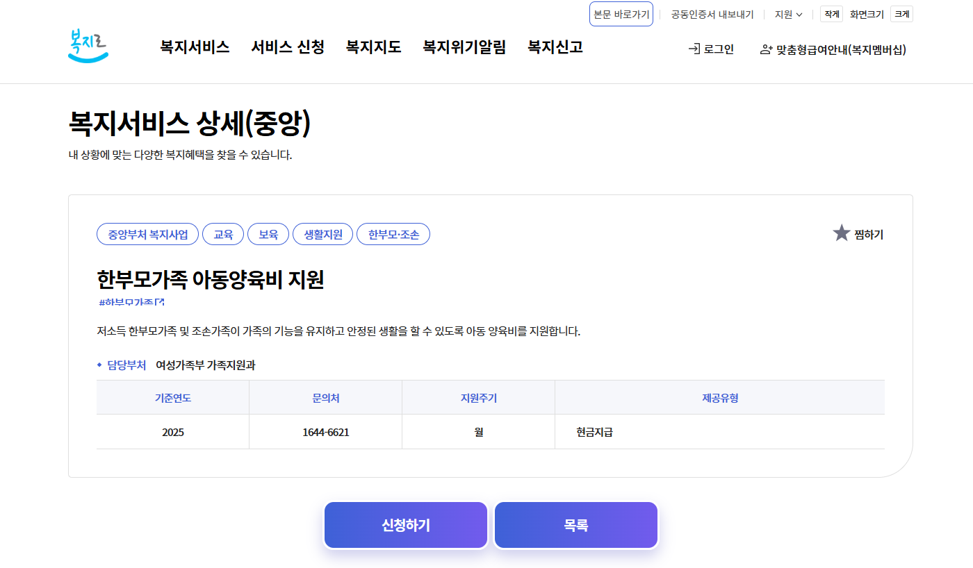 복지로 웹사이트에는 나에게 맞는 복지 혜택이라는 메뉴가 있습니다. 이 메뉴에서 몇 가지 간단한 질문에 답하면, 우리 가구가 받을 수 있는 다양한 복지 혜택을 한눈에 확인할 수 있습니다. 한부모가정 지원금 외에도 다른 복지 혜택을 찾아보는 데 큰 도움이 됩니다.