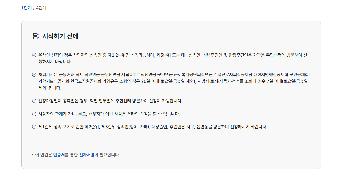3. 안심상속 원스톱서비스 신청 시 유의사항