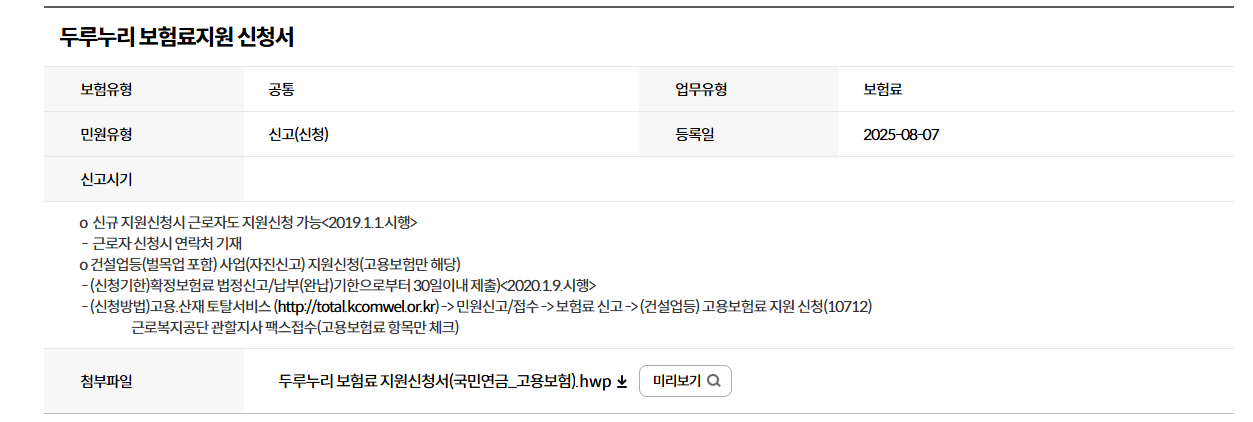 이때 중요한 것은 두루누리 지원 희망 여부를 함께 기재하는 것입니다. 신고서에 이 내용을 명시하면 고용보장 가입과 동시에 두루누리 지원금 신청 의사를 함께 전달할 수 있어 절차가 간소화됩니다.