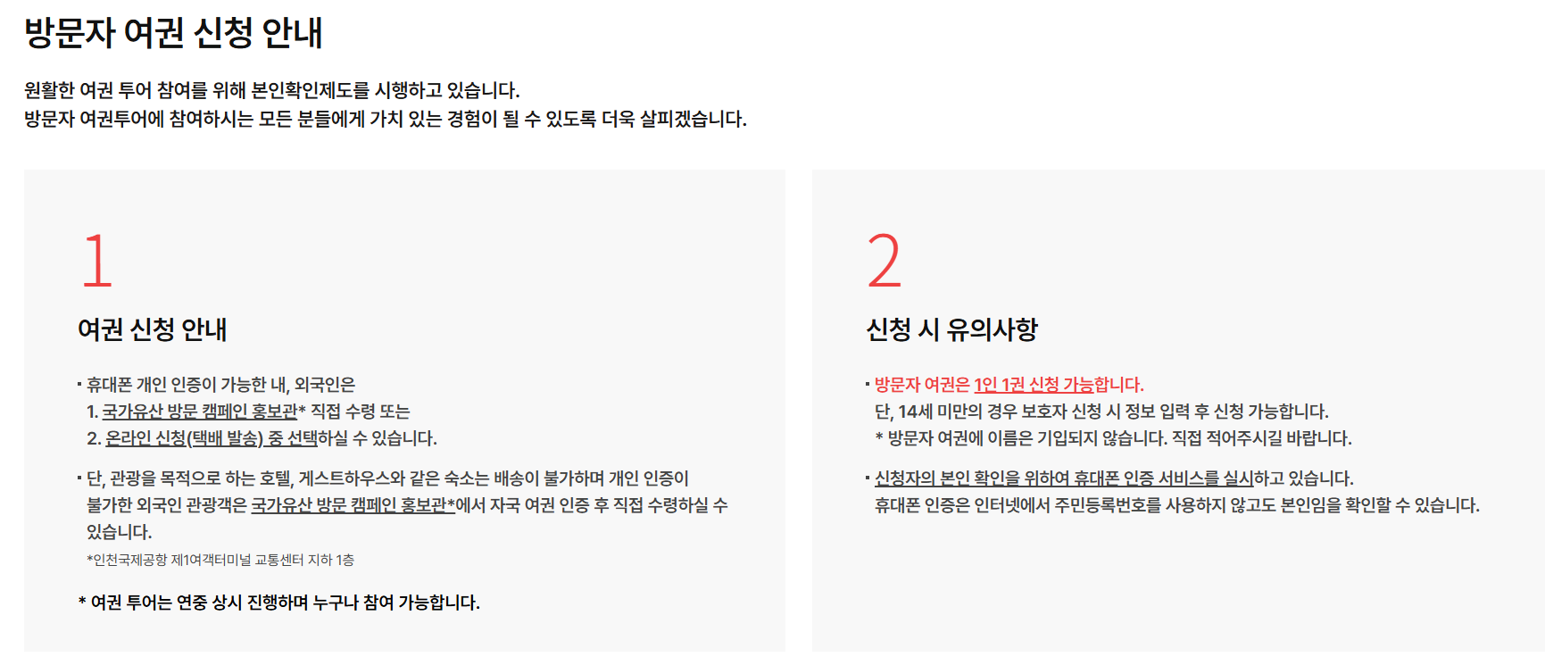 홈페이지에 접속하면 방문자 여권 신청 메뉴를 찾을 수 있습니다. 여기서 이름, 연락처, 주소 등의 기본 정보를 입력하고 신청하면 됩니다. 여권은 무료로 제공되며, 배송료만 부담하면 됩니다.