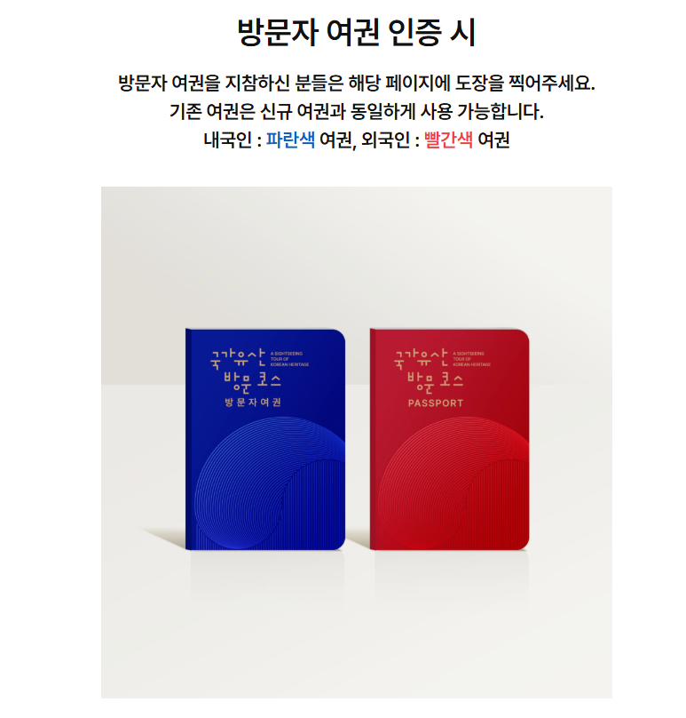 매년 수많은 관광객이 아름다운 우리의 국가유산을 방문하고 있습니다. 그런데 혹시, 방문하는 곳마다 특별한 스탬프를 찍어주는 여권이 있다는 사실, 알고 계셨나요? 이 특별한 여권 하나만 있으면 여행의 즐거움과 특별함을 두 배로 만들 수 있습니다!