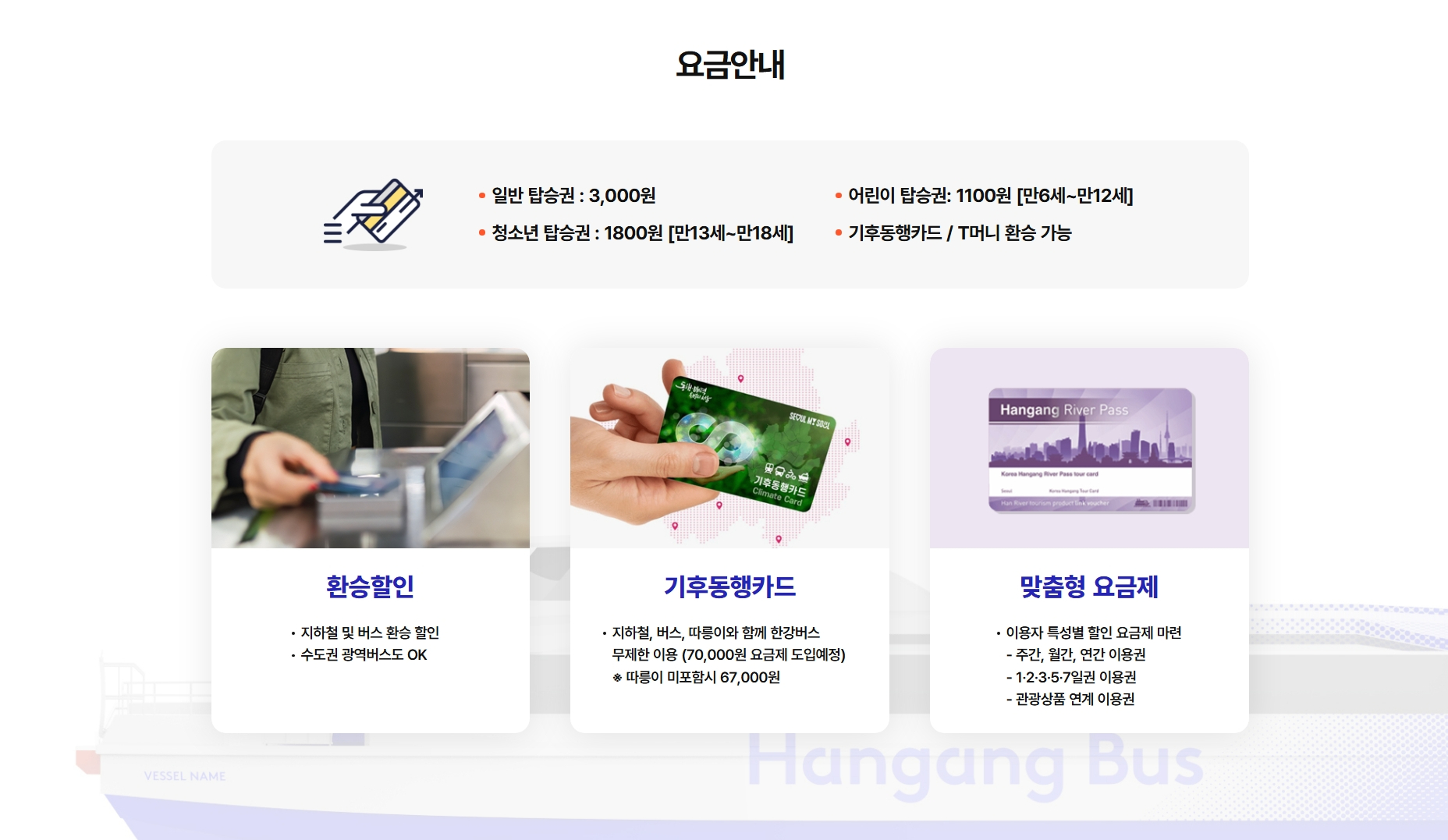 한강 수상버스는 대중교통과 연계하여 편리하게 이용할 수 있도록 요금 체계를 갖추고 있습니다.