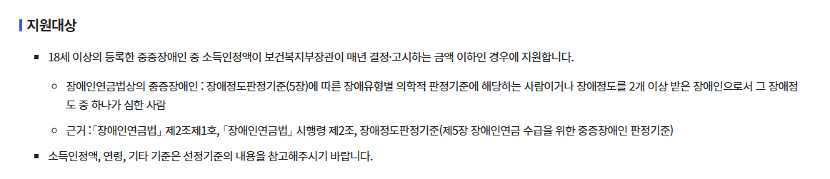 일반 중증장애인: 월 8만 원 지급