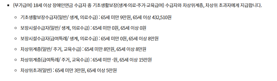 부가급여는 장애인 연금 수급자 에게 일괄적으로 지급됩니다.