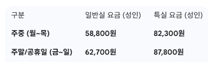여기서 주중은 월요일부터 목요일을, 주말/공휴일은 금요일부터 일요일, 그리고 법정 공휴일을 의미합니다. 성인 외의 대상에게는 별도의 할인 기준이 적용됩니다.