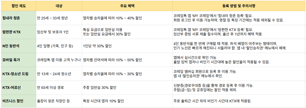 2. 코레일톡 앱을 활용한 KTX 요금 절약 비법 : 할인 제도 상세