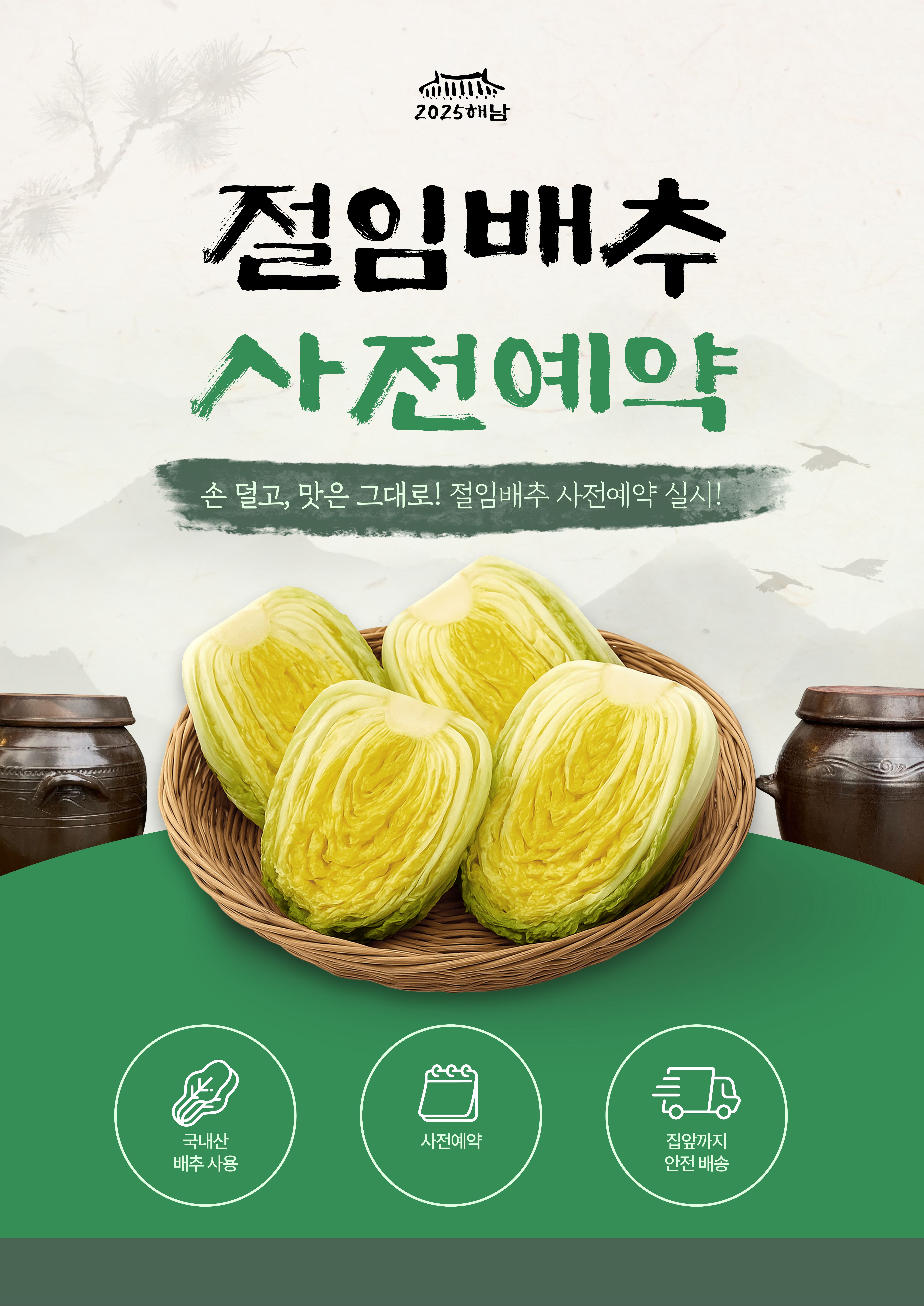해남절임배추와 함께라면, 삭신이 쑤시는 노동 대신 즐거운 마음으로 김치 양념을 버무리는, 여유로운 김장 문화를 경험하게 될 것입니다. 지금 바로 예약 페이지를 열고, 2025년 가장 성공적인 김장 준비를 시작하세요!