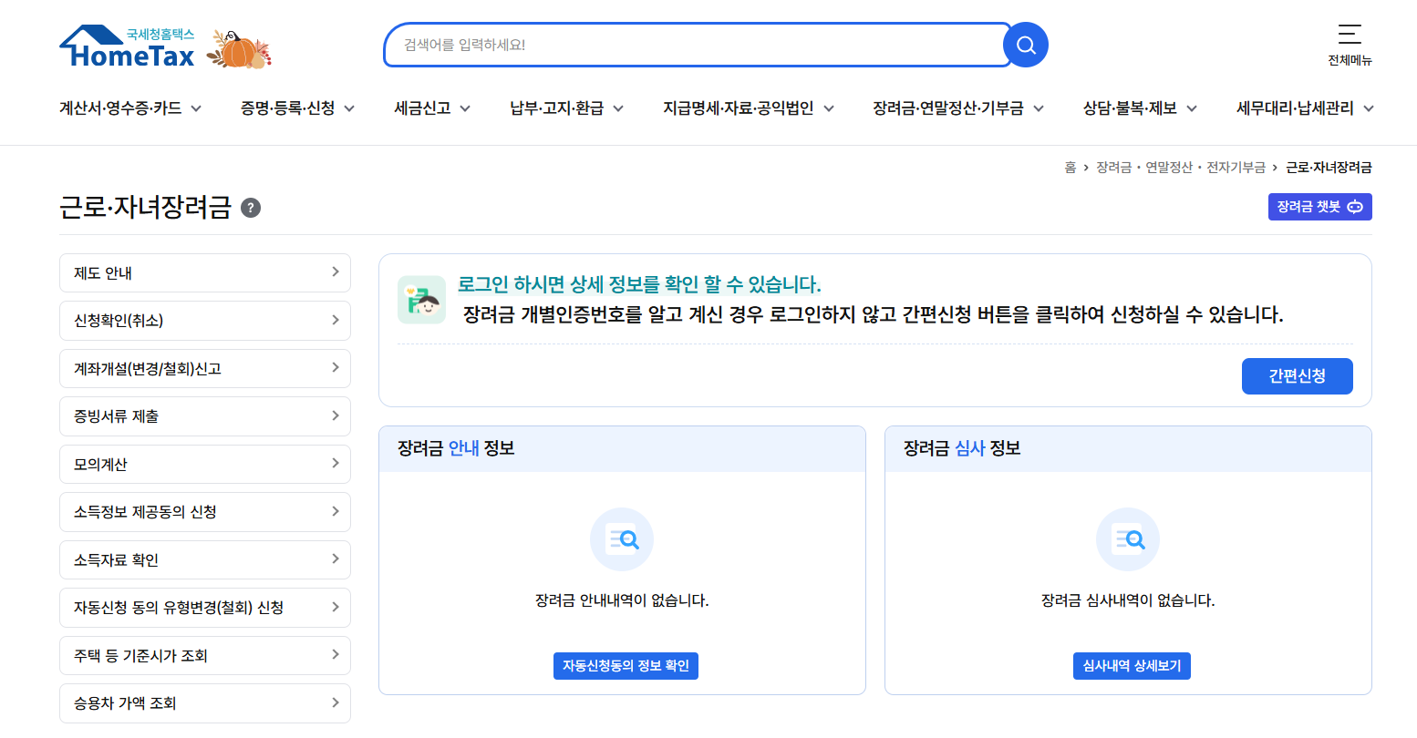 내가 받을 수 있는 장려금의 정확한 금액을 알아보는 가장 확실한 방법은 국세청 홈택스(PC) 또는 손택스(모바일 앱)에서 제공하는 모의계산 서비스를 이용하는 것입니다. 단순히 자격 요건만 확인하는 것을 넘어, 소득과 재산 정보를 입력하면 예상 지급액을 즉시 산출해줍니다.