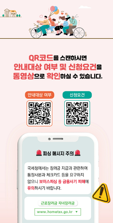 우편 안내문의 QR코드를 스마트폰으로 스캔하여 접속, 간편하게 신청할 수 있습니다.