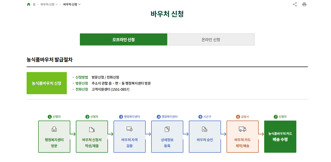 카드 미수령 또는 주소 오류로 인한 반송 : 주소가 부정확할 경우 카드가 반송될 수 있으며, 이 경우 고객센터(농식품 바우처 콜센터 1577-7770)로 연락하여 재발급을 신청해야 합니다.