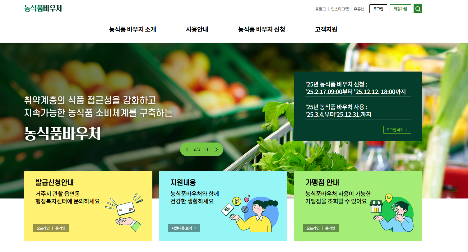 1단계 – 농식품 바우처 홈페이지 접속 및 신청 페이지 진입